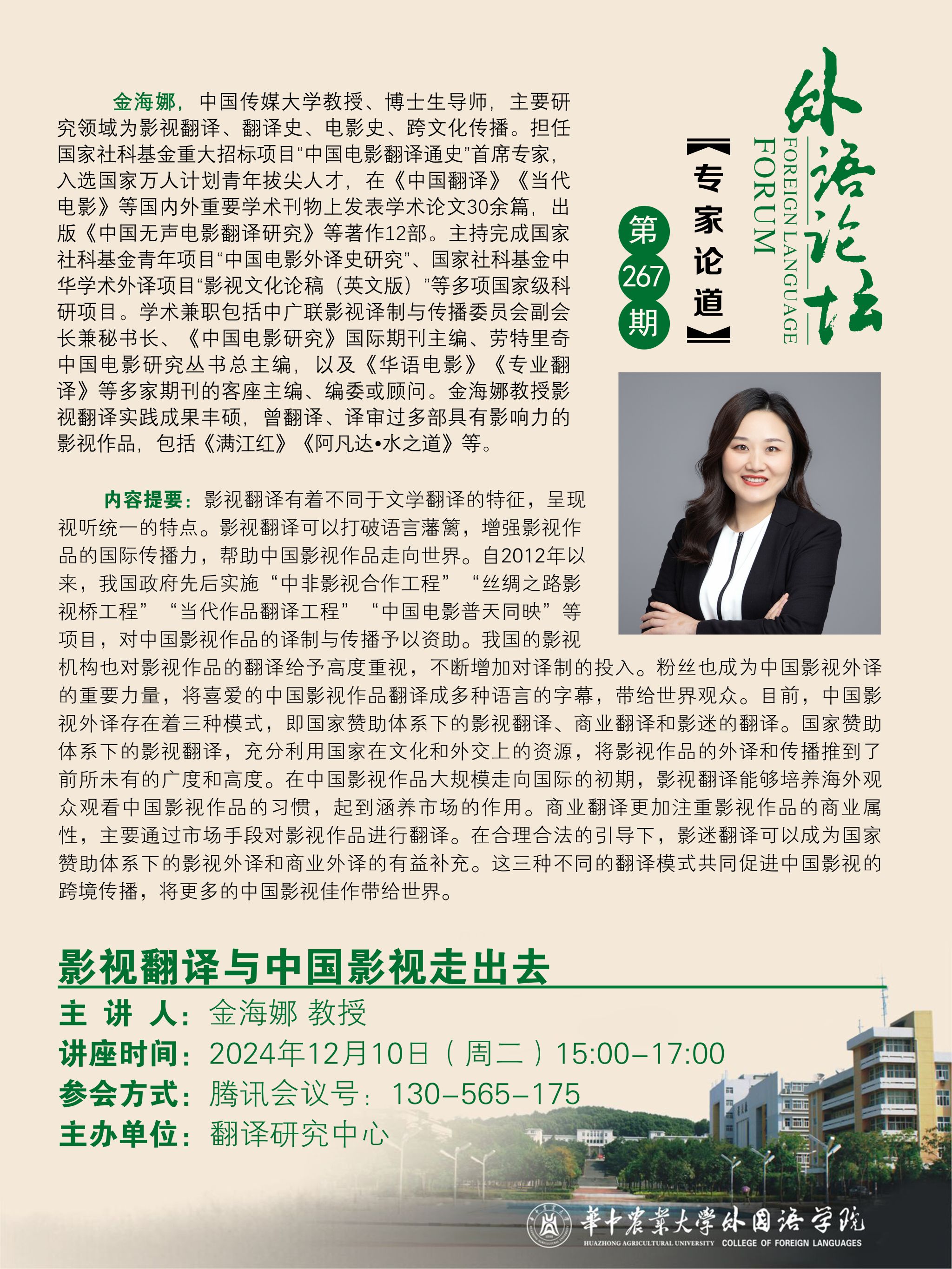 (第266期)Global Voices on Screen: Challenges in Translating Non-English Audiovisual Productions