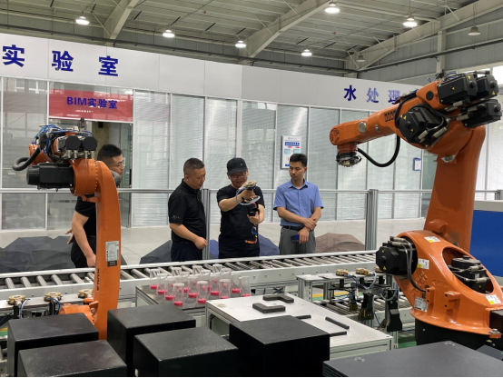 张博董事长一行首先参观了beat365英国官网网站实验室,实验室吕晓军主任进行了讲解,介绍了机器人产线、智能制造系统及液压试验台等设备,并对实验能力、对外服务能力等做了介绍。