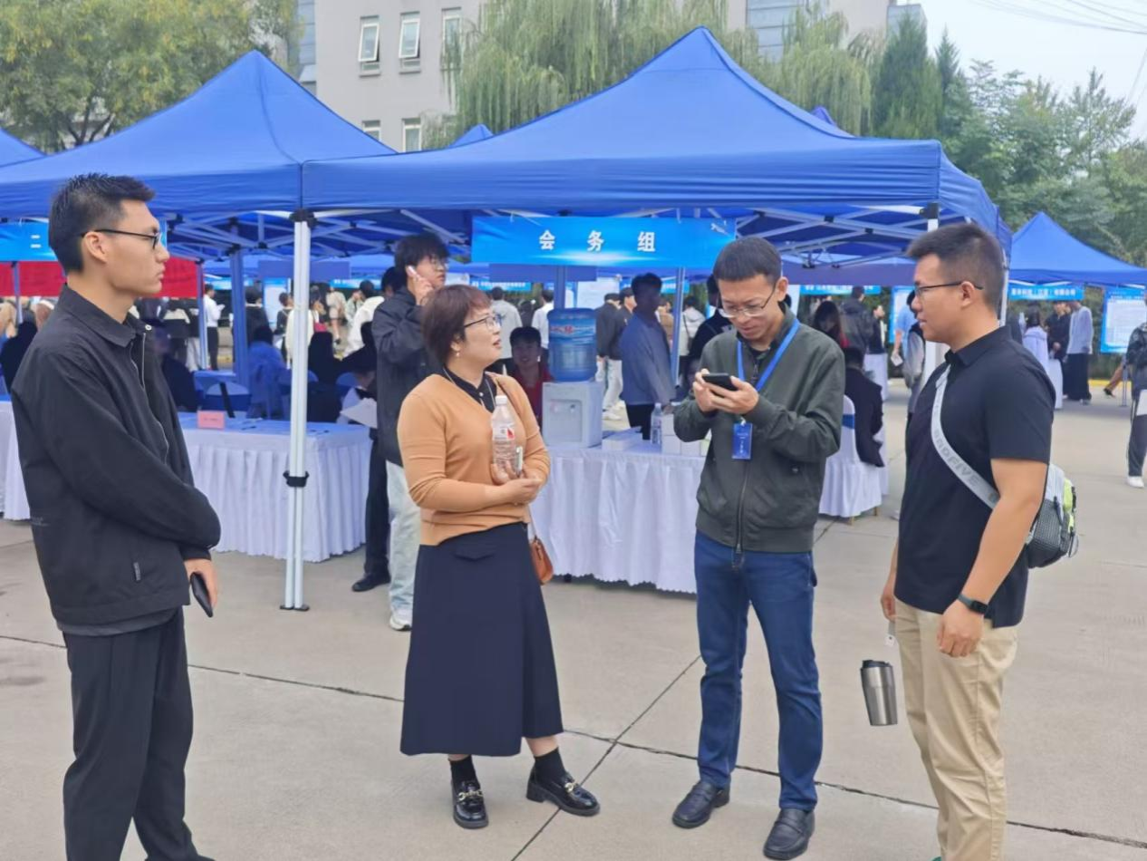 在双选会现场,beat365官网党总支书记孙茉莉、党总支副书记刘欣、2025届就业辅导员谢肖、王鹏博、深入现场与用人单位进行交流,积极向企业推介beat365官网优秀毕业生,同时为毕业生就业提供全方位的答疑解惑。