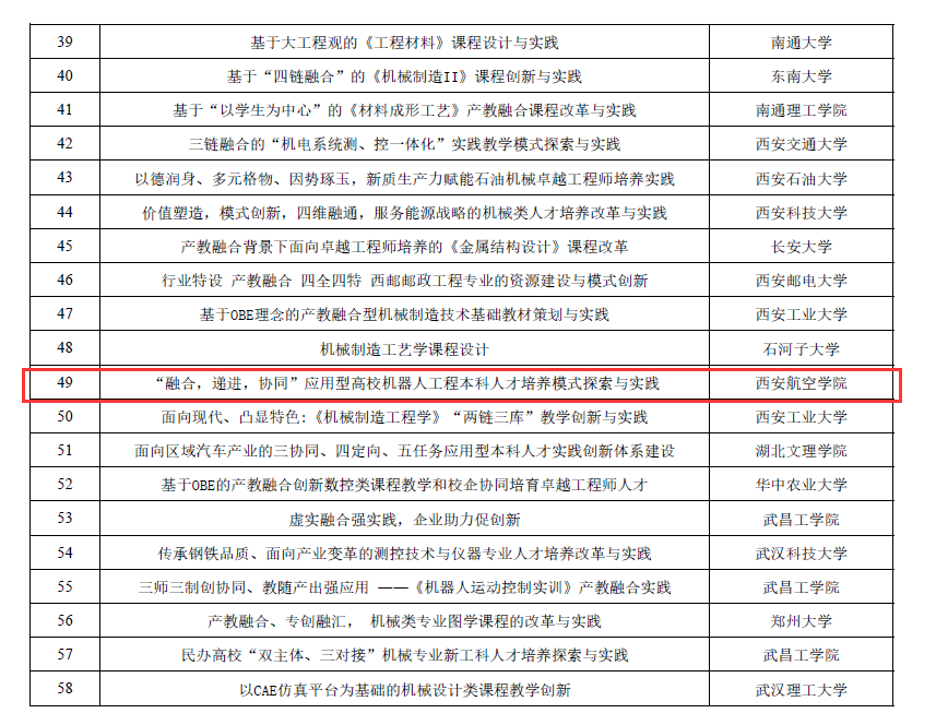本届比赛全国共有311项作品参赛,最终获得区域赛奖项的有包含beat365官网以及西安交通大学、西北工业大学、西安工业大学等院校的21件作品,其中本校机械学院参赛作品“融合,递进,协同”应用型高校机器人工程本科人才培养模式探索与实践”获得区域赛二等奖,作品成果报告主要围绕机器人工程专业领域理论课及实践课相关教学内容、平台资源建设与教学模式等创新,聚焦于解决教学真问题、提高教学成效并推广,充分展现了beat365官网教师队伍扎实的专业素养和与行业企业协同育人的成效。