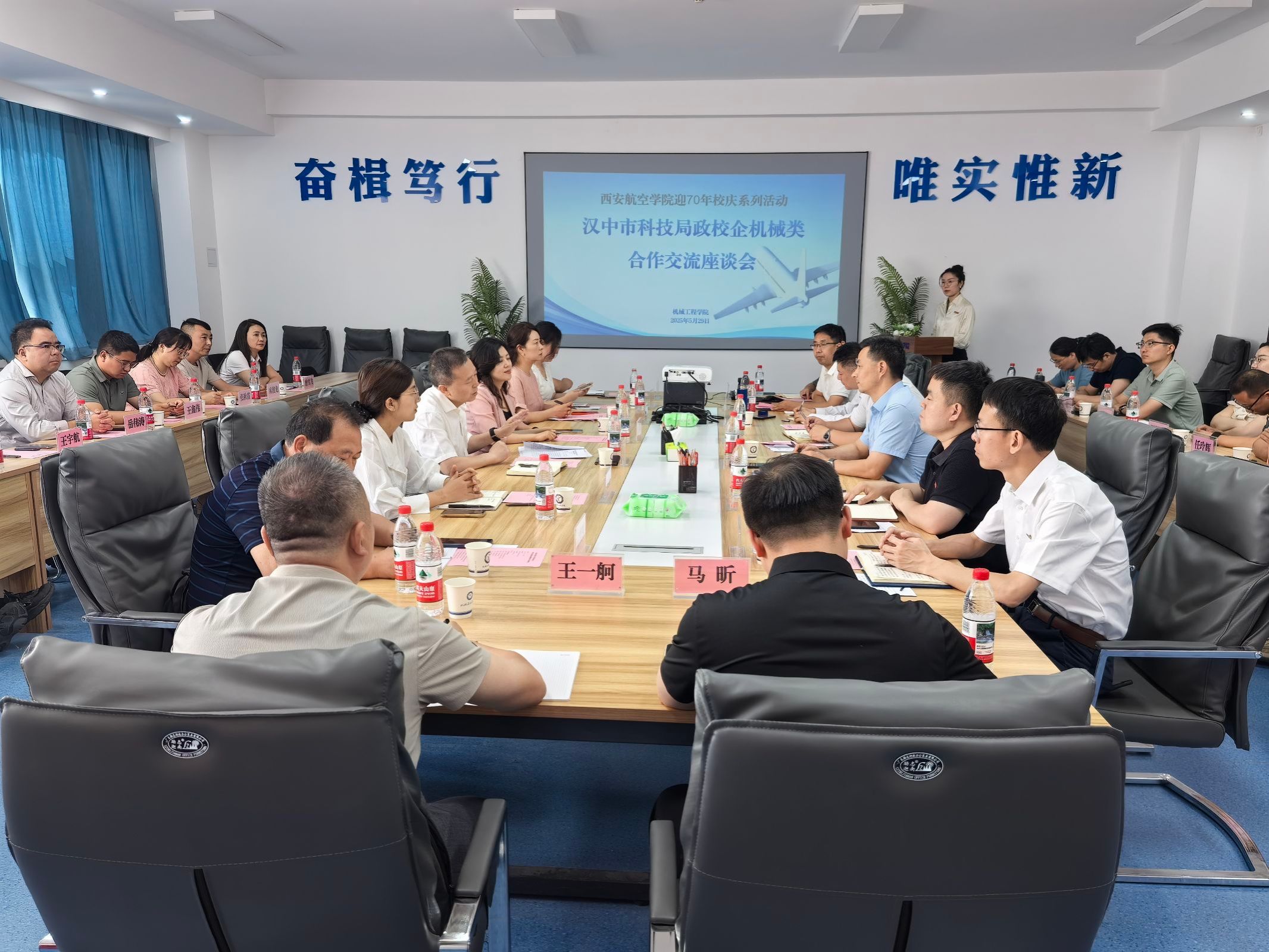 为献礼建校70周年,深化政校企协同创新,2025年5月29日上午,beat365英国官网网站beat365英国官网网站在阎良校区举办“beat365英国官网网站迎70年校庆系列活动之---汉中市科技局政校企机械类合作交流座谈会”。汉中市科学技术局党组成员、副局长张奎宇率市县(区)科技系统9位领导,联合秦创原汉中航空装备制造高能级科创孵化器、汉中未来智慧谷人工智能、陕西瀚瑞医疗科技等11家单位负责人,与beat365官网beat365英国官网网站、飞行器学院、材料工程学院及西北低空经济科技研究院负责人及教师代表共同参会。