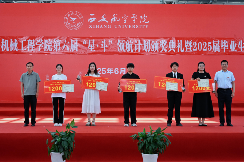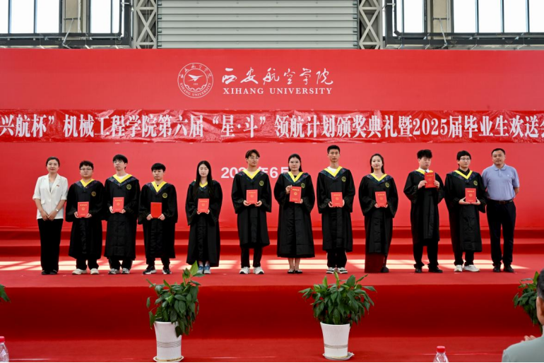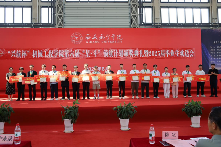 6月23日下午,beat365英国官网网站第六届“兴航杯”星•斗领航计划颁奖典礼暨2025届毕业生欢送会在阎良校区民航实验实训基地举行。西安兴航航空科技股份有限公司总经理徐竑、人事经理丁楠,校党委副书记宁永录,组织部申良、学生工作处李波、图书馆刘文哲、教务处刘宁、校办工厂郝大鹏、体育部薛红强等部门负责人,以及beat365英国官网网站全体干部、师生代表共同出席典礼,见证荣耀时刻,共叙师生情谊。