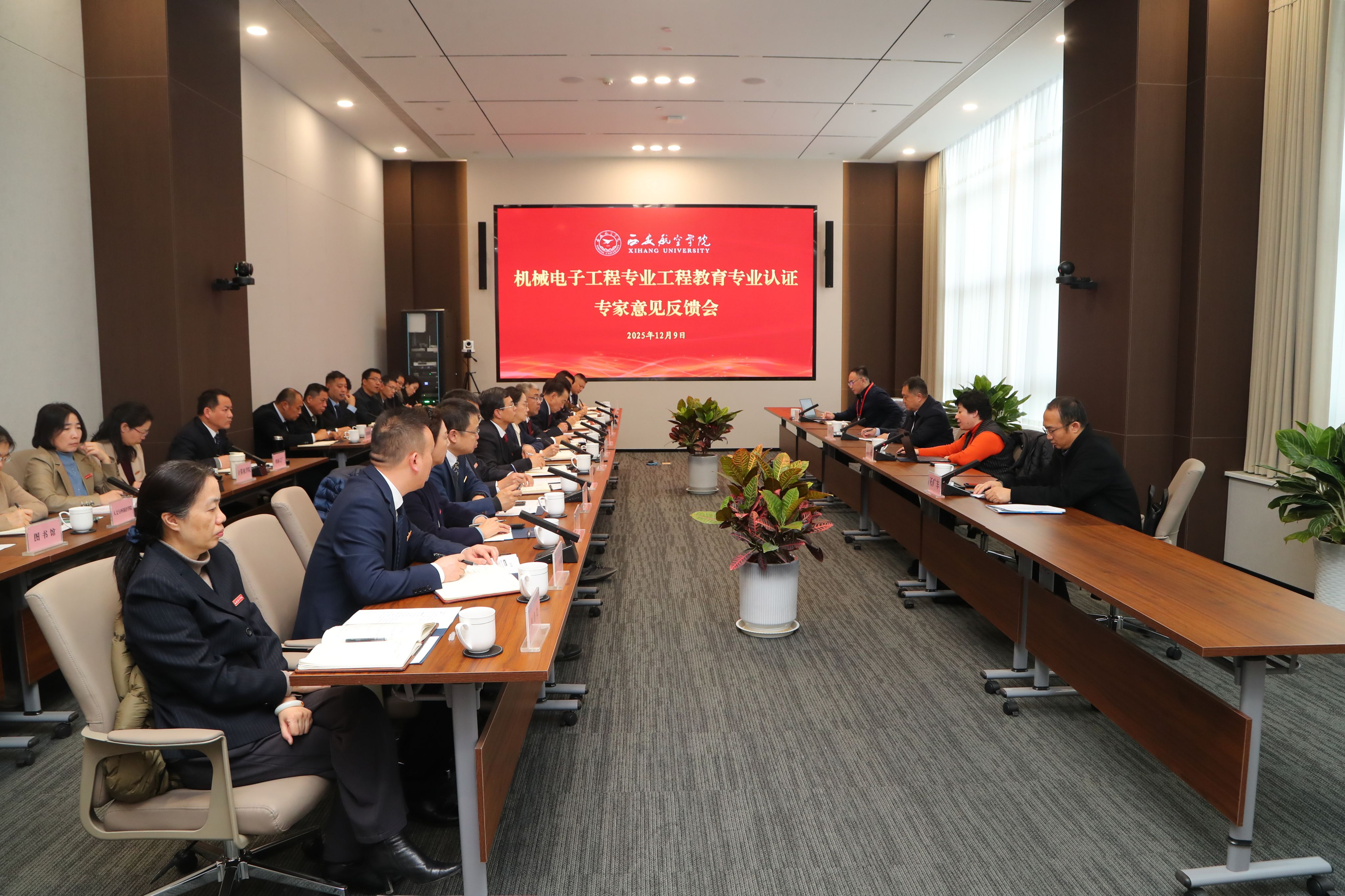 12月9日下午,工程教育专业认证专家意见反馈会在校召开。组长孙桓五教授代表专家组反馈了现场考查意见。专家组对beat365官网机械电子工程专业的建设成效给予了充分肯定,认为专业依托航空产业背景,特色鲜明,在课程体系构建、实践教学环节、学生工程能力培养等方面取得了显著成效。同时,专家组也从持续改进机制优化、复杂工程问题能力培养强化、毕业要求达成评价精细化等方面提出了宝贵的意见和建议。各位专家分别补充了个人考查意见。