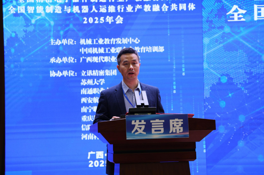 河南科技学院副院长杨文强以《人工智能赋能下的研究生产教科赛教学体系创新与实践》为题作主旨报告,分享了高端人才培养模式的创新经验;重庆科创职业技术学院智能制造与机器人学院副院长邓文亮、信阳涉外职业技术学院副校长邱鑫、立讯精密集团校企合作负责人汪宝峰、广西巨大教育科技集团陆雪梅等,分别围绕校企合作、产业技术前沿等主题作交流发言。此外,会议宣布全国智能制造与机器人运维行业产教融合共同体中越工匠学院正式成立,并为新增及现有成员单位颁发牌匾,进一步提升产教融合协同育人水平。本次大会共吸引包括苏州大学、桂林电子工业学院、河南科技学院等20多家本科院校和40多家职业院校参加。