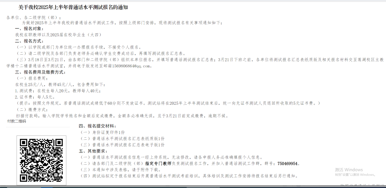 关于beat365官网2025年上半年普通话水平测试报名的通知