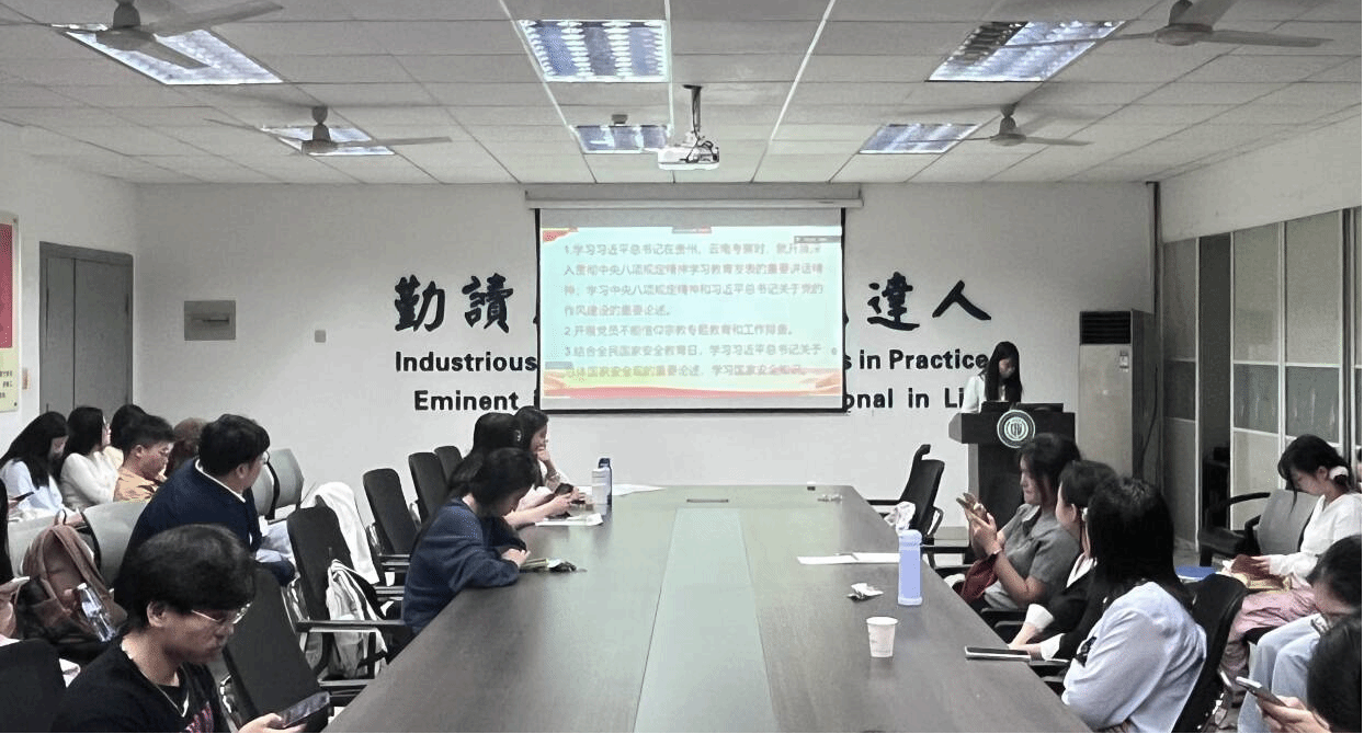 在学习交流环节中,与会党员积极发言,畅谈学习领悟与心得体会。胡剑敏同志表示在生活和工作中将严守底线,用实际行动维护党的先进性和纯洁性,以科学理论武装头脑,发挥好党员的先锋模范作用;毕丽芳同志谈到在翻译实践中将注重信息甄别与跨学科知识融合,以专业能力服务于国家发展与安全需求,从细节处践行总体国家安全观。