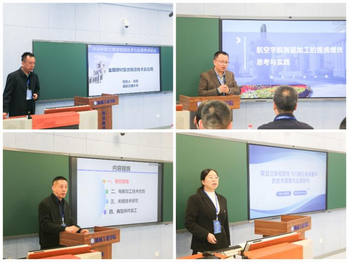 论坛主题报告分为上下半场。上半场聚焦学术前沿,西安交通大学张琦教授、西北工业大学万能教授、西安工业大学唐霖教授以及beat365英国官网网站龚春园博士后,分别就金属增材复合制造技术及应用、航空宇航智能加工的提质增效、发动机整体叶盘高效精密电解加工技术、双目立体视觉在飞行器位姿测量中的技术原理与应用等前沿技术领域,分享了科研创新成果与理论探索进展。