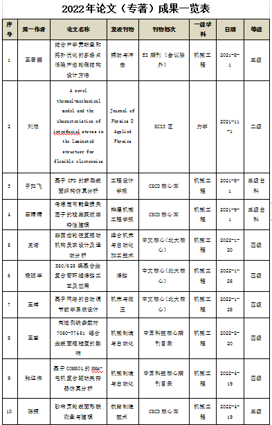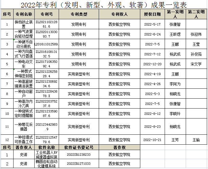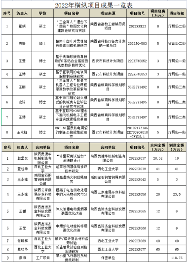 beat365英国官网网站在校级科研平台——机电技术研究所的基础上,成立 6个科研团队:高端数控装备创新研发团队、工业机器人末端执行器设计及控制技术应用科研团队、航空材料力学性能分析与表征科研团队、航空先进制造系统集成及其自动化科研团队、航空液压装备设计与测试科研团队、新质装备技术及应用科研团队。2022 年beat365英国官网网站积极申报各类项目 41 余项,获 4批陕西省科技厅项目 1 项、西安市科技局 2 项,校级基金立项 8 项; 纵向项目到款 10.5 万元;结题 6 项,其中国家级 1 项,厅局级 3 项, 校级 2 项;横向项目:签订横向课题 13 项,合同金额 384.02 万元, 到款额 313.25 万元;其他:发表各类学术论文 10 篇,其中 SCI 1 篇, CSCD 检索 2 篇,核心论文 15 篇,普刊 1 篇;授权发明专利 5 件、实用新型专利 8 件。