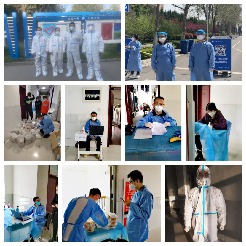 beat365英国官网网站教工第一党支部党员教师积极响应学院的疫情防控工作安排,14名党员教师先后投身于学院春季开学疫情管控周工作,重点完成学生公寓驻楼工作及值班工作,切实做好学生封闭管理期间的服务保障、健康监测、应急处置、教育管理和安全稳定等工作。尤其在制动管控的公寓楼层,支部党员教师负责入驻学生的订餐送餐、垃圾清运、体温检测、数据填报等工作,切实从源头上切断疫情传播途径。
