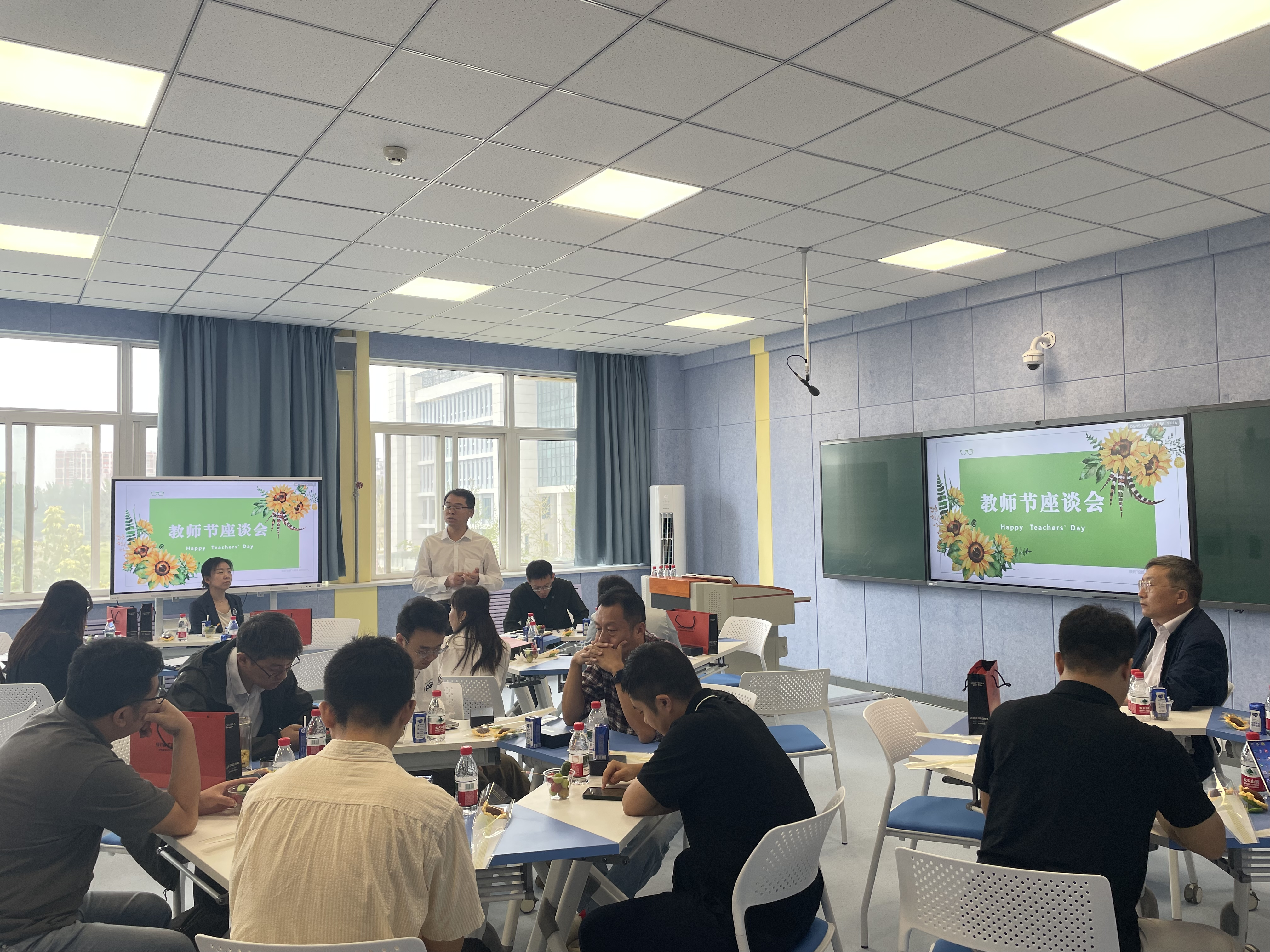 讲座结束后,学院教职工继续举行了第41个教师节庆祝活动暨座谈会。与会教师围绕学院各项工作积极建言献策,现场气氛热烈,充分展现出高度的主人翁意识和昂扬向上的精神风貌。(图、文/李茜、田国良 审核/杨武成)