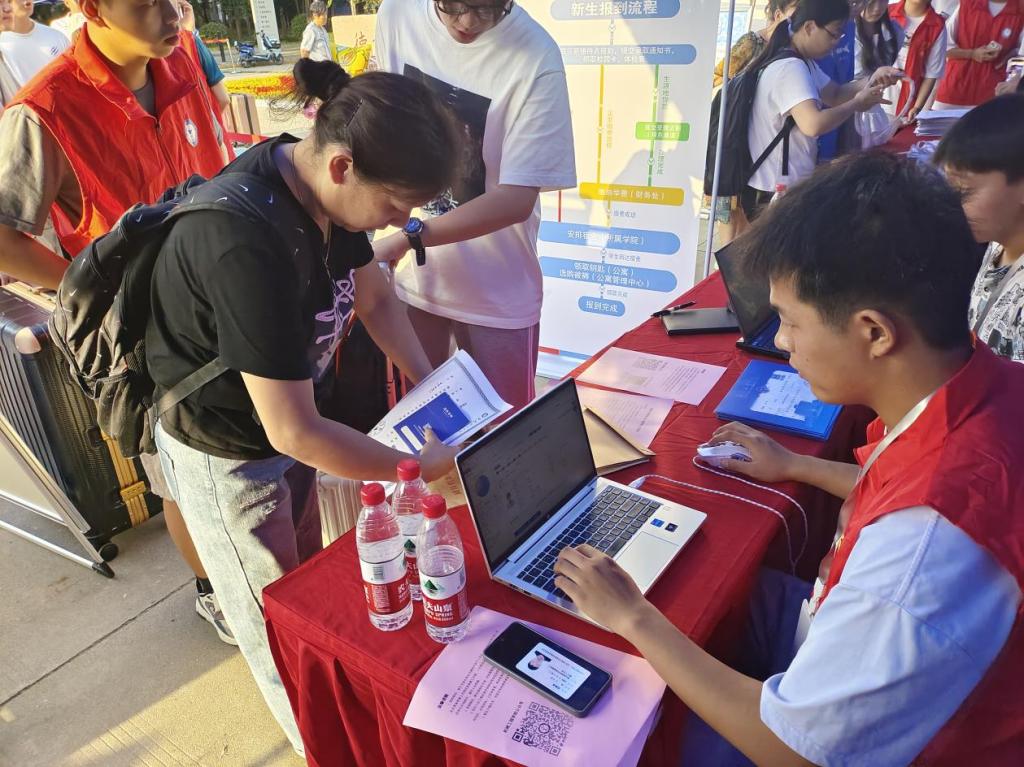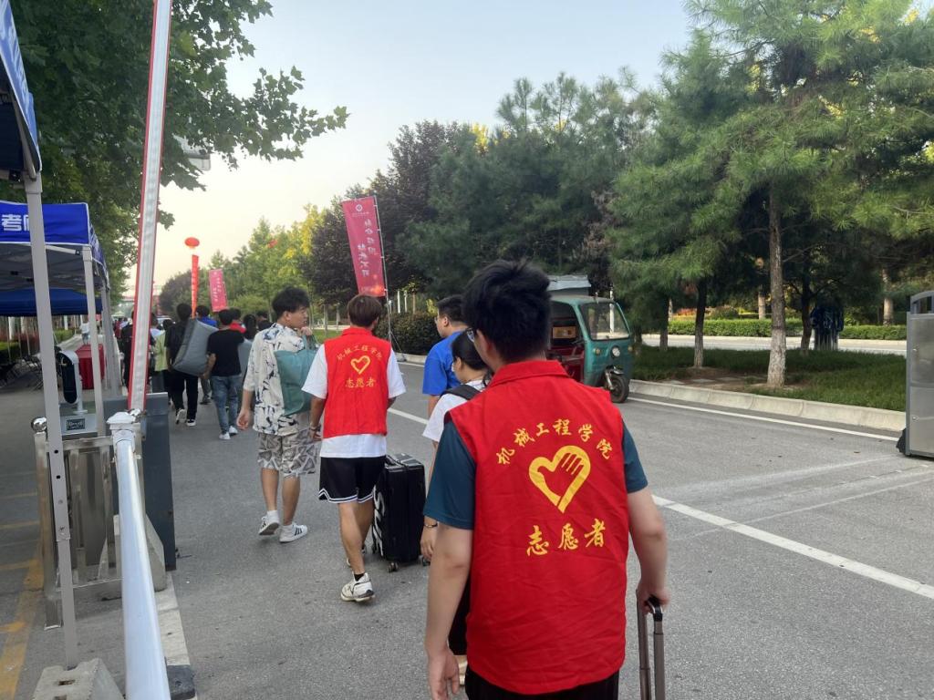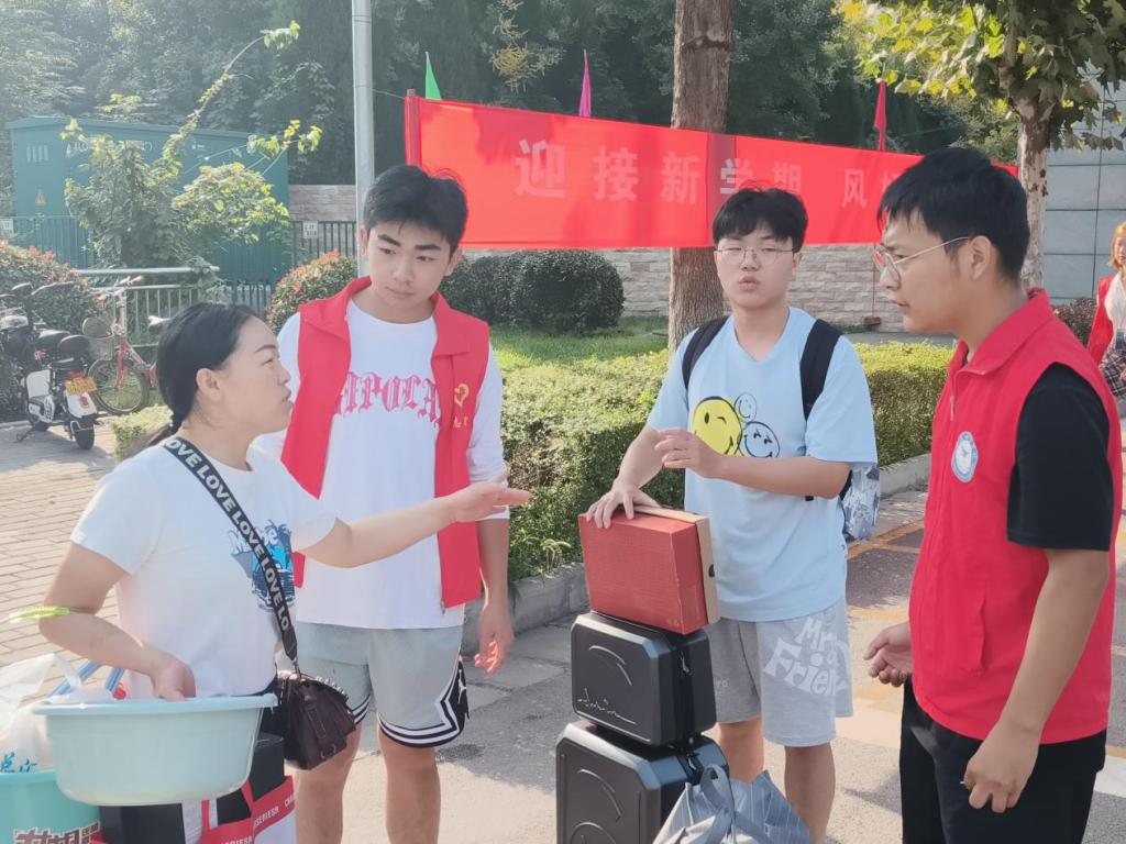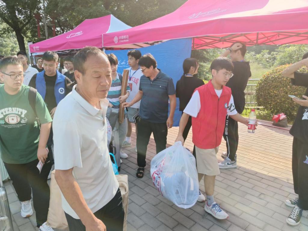新生入校后,志愿者们热情迎接每一位新生的行李,一路从校门口送到新室。他们是穿行校园的“拎包侠”,是各报道点的“指南针”,是校园知识的“百科全书”,志愿者与老师们用细心周到的服务,引导“小萌新们”顺利完成返校报到。一张张热情的笑脸、一句句亲切的问候、一项项贴心的服务,组成了靓丽的风景。