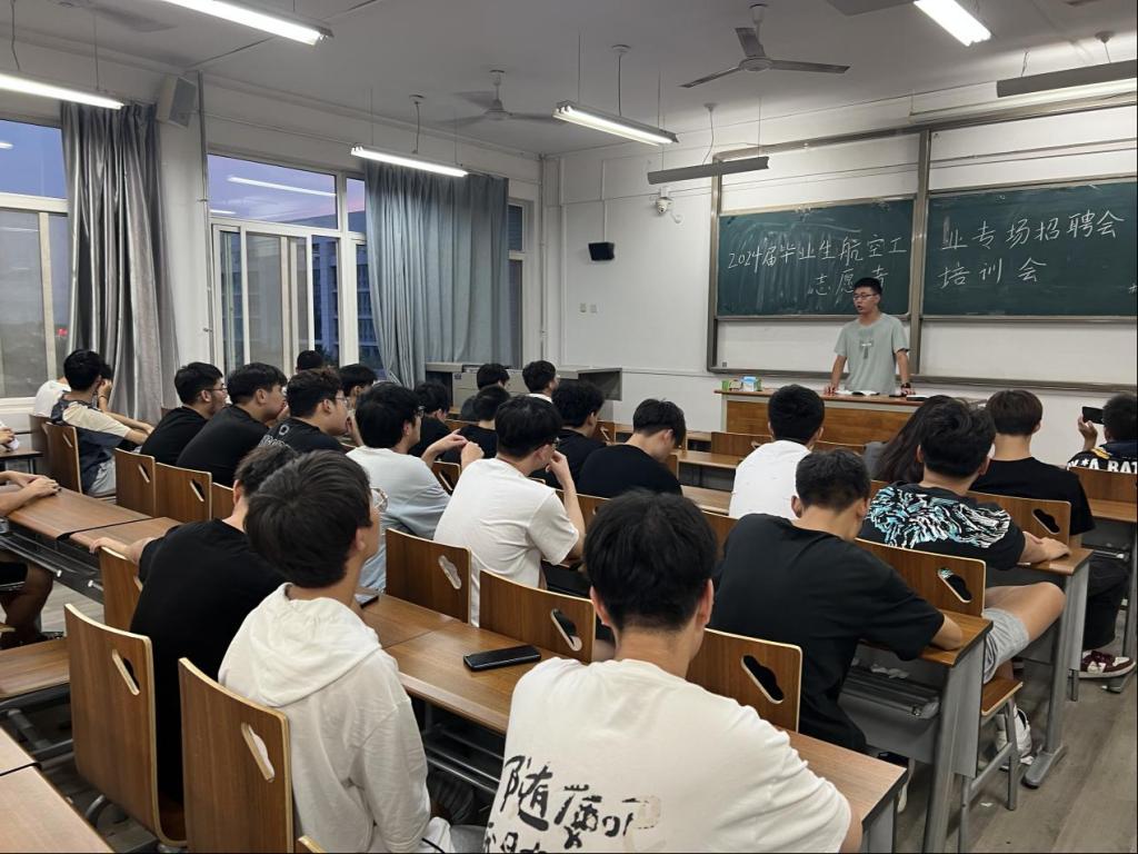 在接到参与本次招聘会志愿服务活动通知后,beat365官网青年志愿者中队高度重视,积极做好组织动员工作,精心选拔志愿者,落实志愿服务管理和保障工作各项细节。为保证招聘会有序进行,9月12日下午7点,beat365官网组织志愿者30余人在阎教楼1434教室召开了“2024届毕业生航空工业专场招聘会志愿者培训会”。会议主要向大家指出了本次校园招聘会的重要性以及招聘地点与时间。根据招聘单位的信息及分布,志愿者们明确分工,分组部署工作计划,强调志愿服务过程中同学们需要注意的时间地点和重要事项,做好维护招聘会秩序、展现精神风貌等工作。