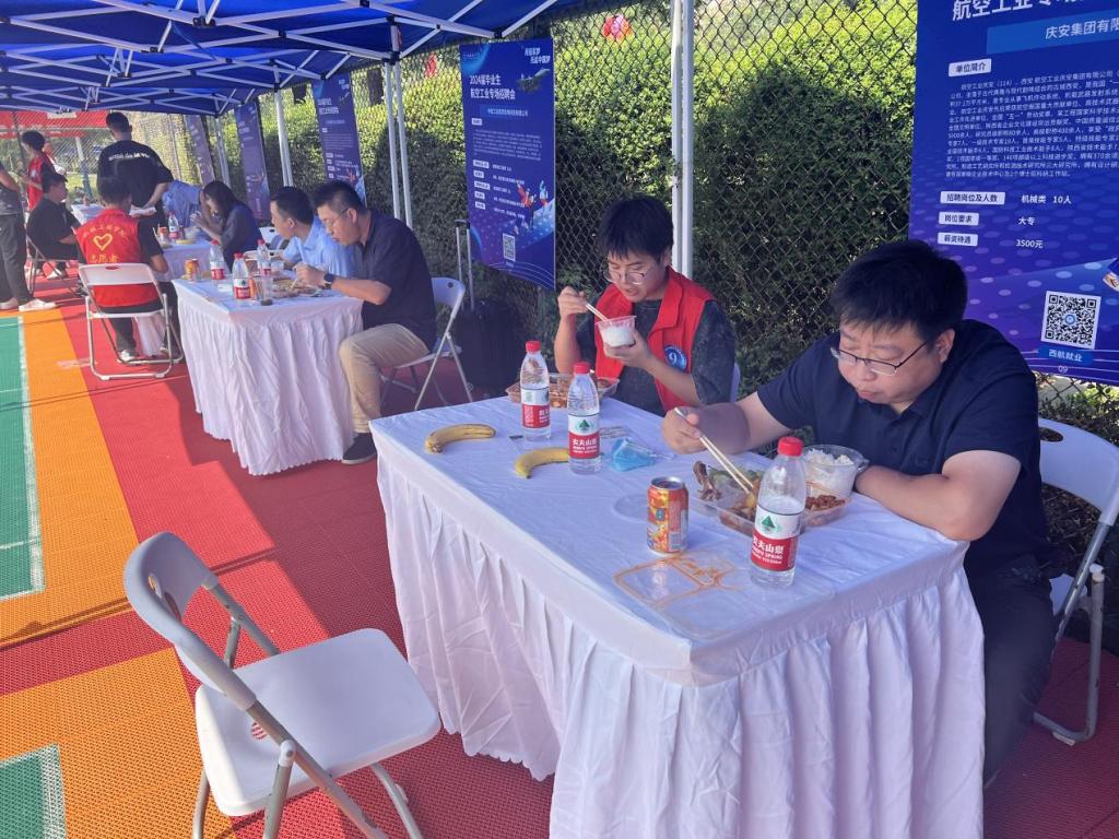 招聘会期间,志愿者们身穿红色马甲,忙碌的身影穿梭在各个角落,成为西航一道靓丽的风景线。他们吃苦耐劳、尽职尽责、热情服务,充分展现了“奉献,友爱,互助,进步”的志愿服务精神,得到了用人单位的高度赞扬,提升了beat365英国官网网站服务社会的良好形象。学校也贴心为企业及志愿者们提供爱心盒饭,包含水果及饮料、矿泉水,给志愿者们补充体力,稍作休整为接下来的工作加油蓄力。