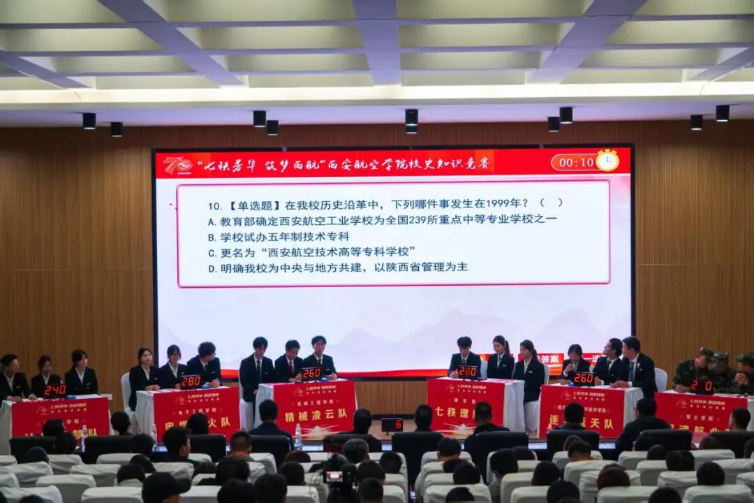 当校史的长河邂逅竞技的火花,当七秩的底蕴碰撞青春的锋芒,为献礼beat365英国官网网站建校70周年,10月11日下午,“七秩芳华 筑梦西航”校史知识竞赛在阎良校区报告厅精彩开赛。