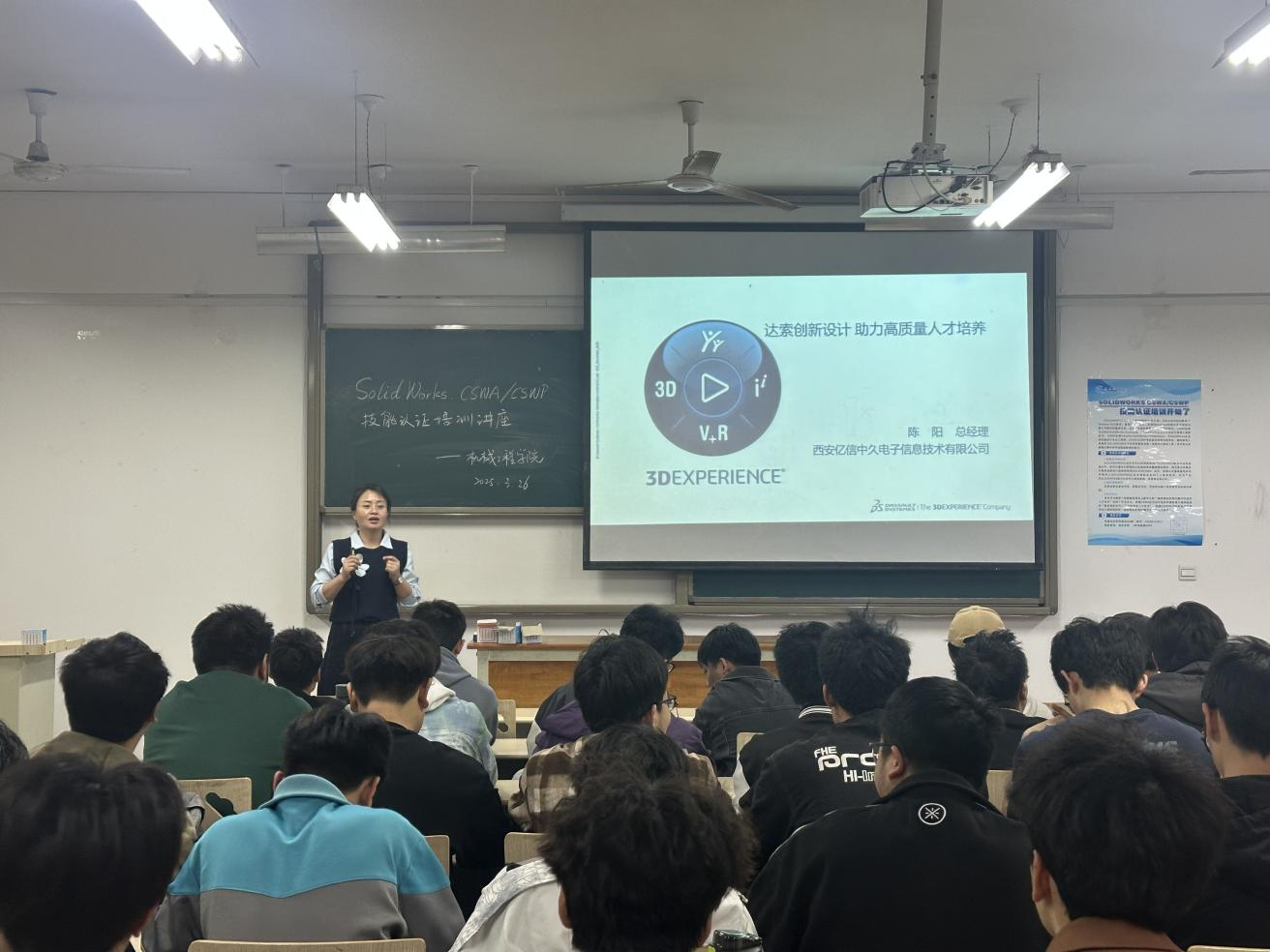 为宣传SOLIDWORKS CSWA/CSWP技能认证工作,强化beat365官网学生专业技能水平,推动就业工作发展。10月22日,beat365英国官网网站邀请西安亿信中久电子信息技术有限公司总经理陈阳来beat365官网阎良校区进行SOLIDWORKS CSWA/CSWP技能认证培训讲座。
