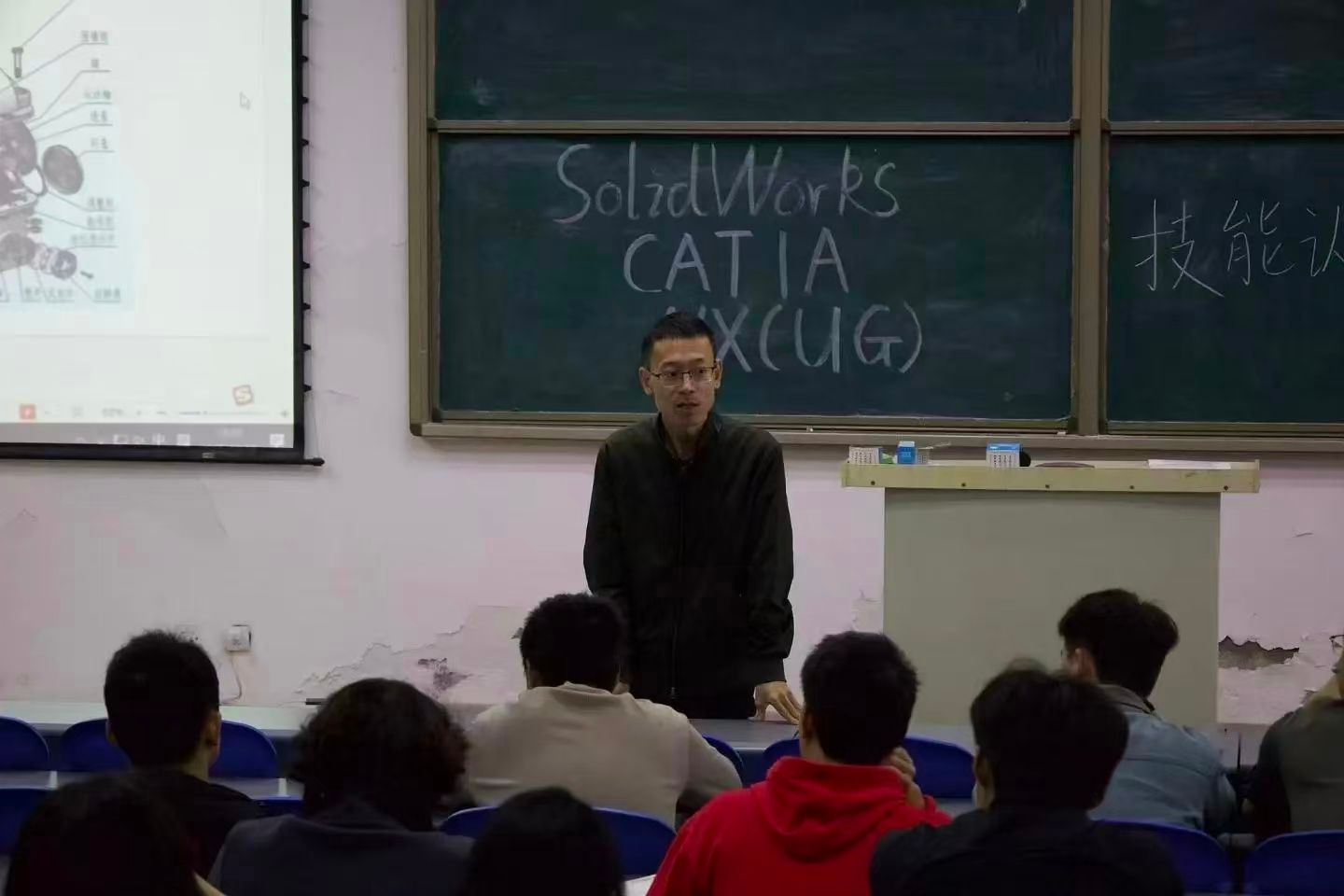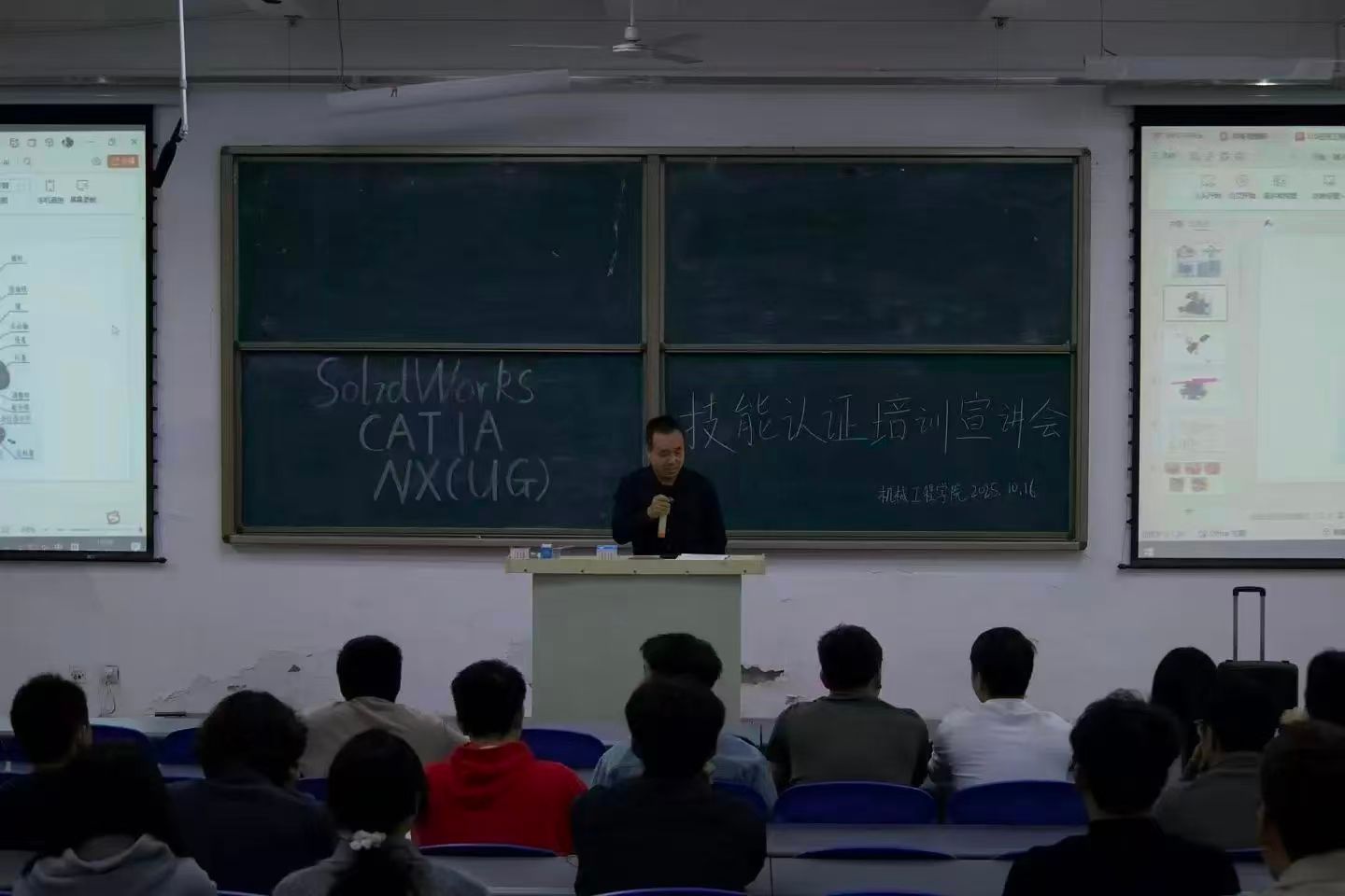 为加强学风建设、提升学生专业技能水平、促进高质量就业,10月16日,beat365英国官网网站特邀西安亿信中久电子信息技术有限公司总经理陈阳及学院图学会带头人张孝林老师在阶梯教室开展了SW/ NX(UG)/CATIA技能认证培训宣讲会。学院副院长李懿、副书记刘欣和对技能认证感兴趣的同学参与了宣讲会。