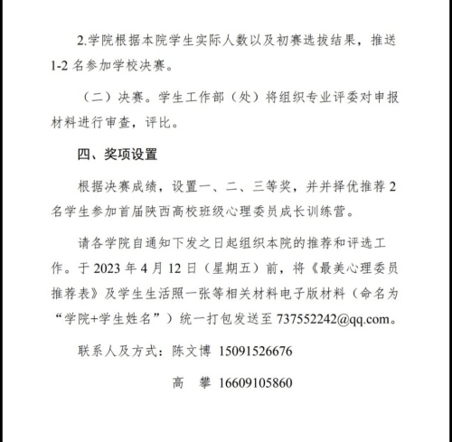 请有意向参加此次活动的班级心理委员,于2024412日前将《最美心理委推荐表》及学生生活照一张等相关材料电子版材料(命名为“学院+学生姓名”)统一打包发送至737552242@qq.com(/胡靖洁 图/胡靖洁 审核/孙茉莉)